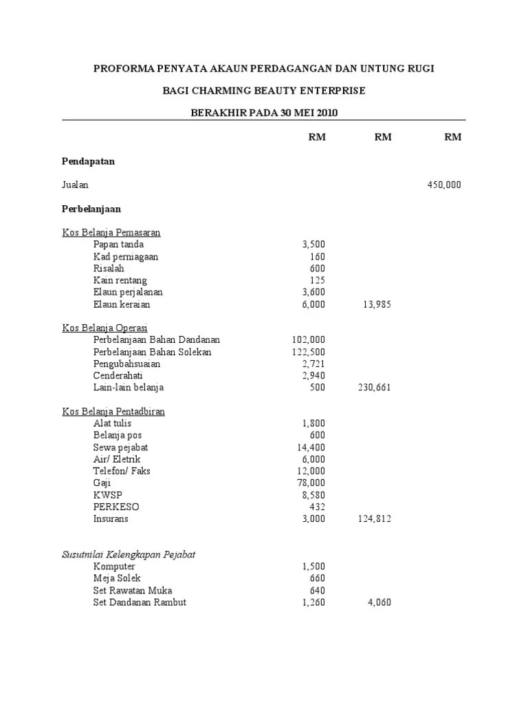 Format Penyata Perdagangan Dan Untung Rugi / Penyata pendapatan